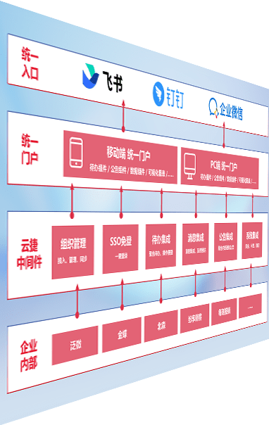 对协作平台提供支持服务,,,支持企业应用与协作平台对接,,,,包含组织同步、、、、消息集成、、、待办集成等。。支持目前主流的协作平台:钉钉、、企微和飞书。。